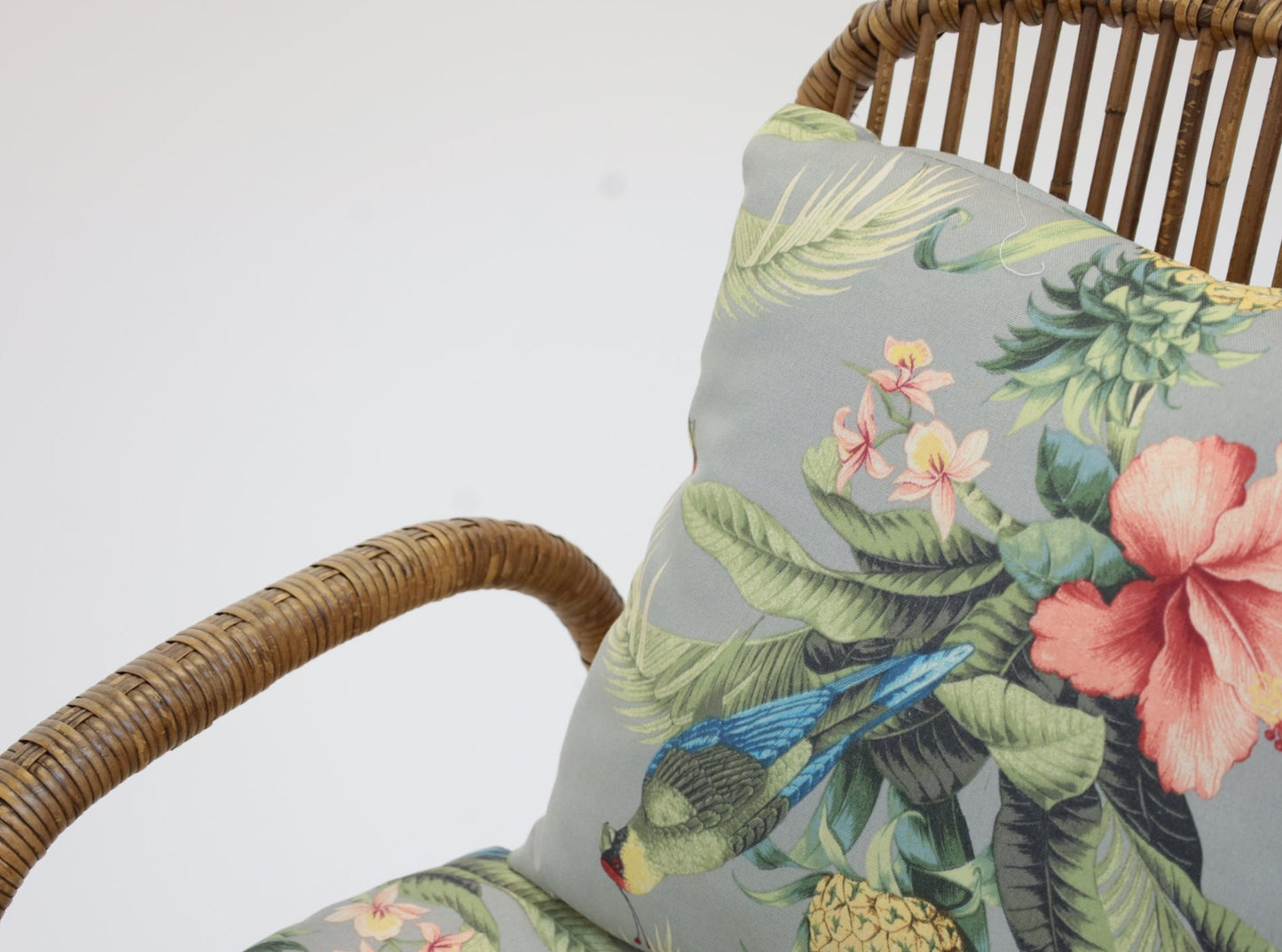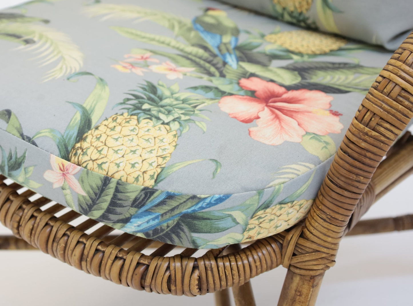 Silla de comedor de ratán con diseño floral gris