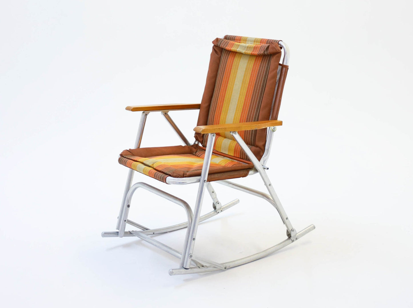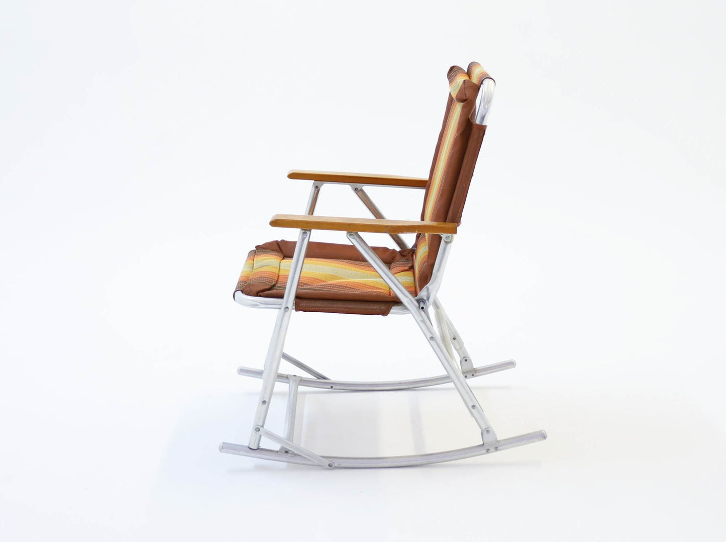 Silla Mecedora de Camping a Rayas Marrón y Naranja
