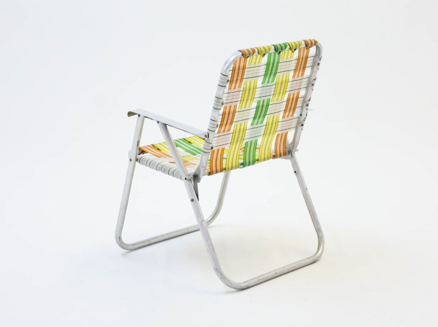 Silla playera/de jardín con tejido en verde, naranja y amarillo