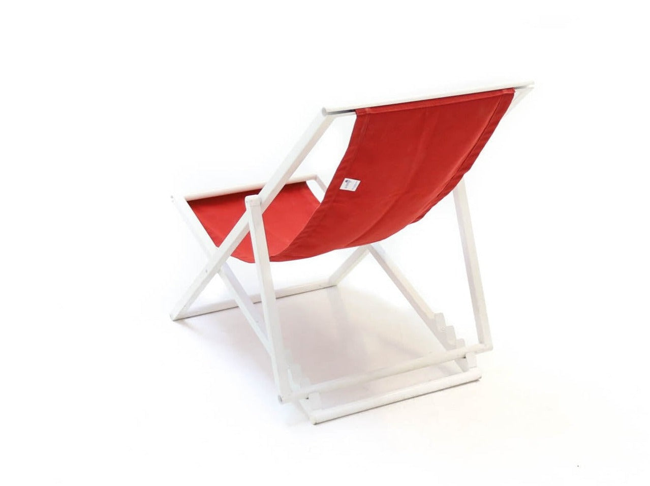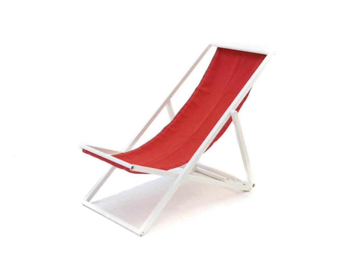 Silla tipo hamaca roja con estructura de aluminio blanco