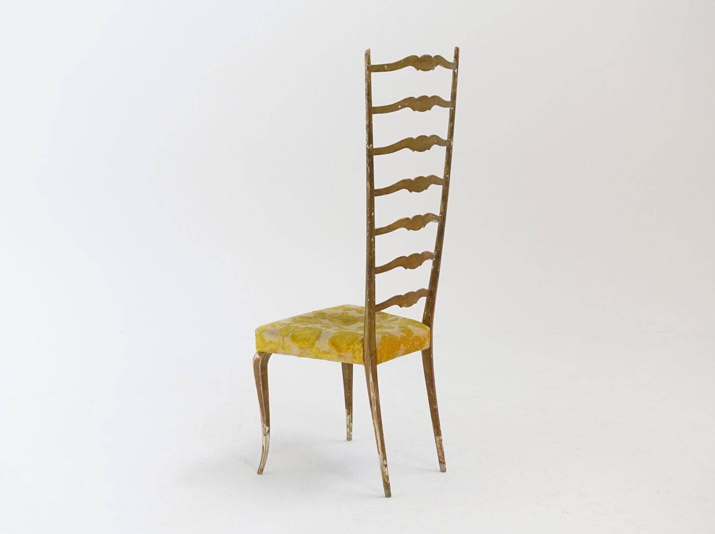 Silla Dorada Italiana de Mediados de Siglo con Respaldo Alto en Escalera de Madera Dorada