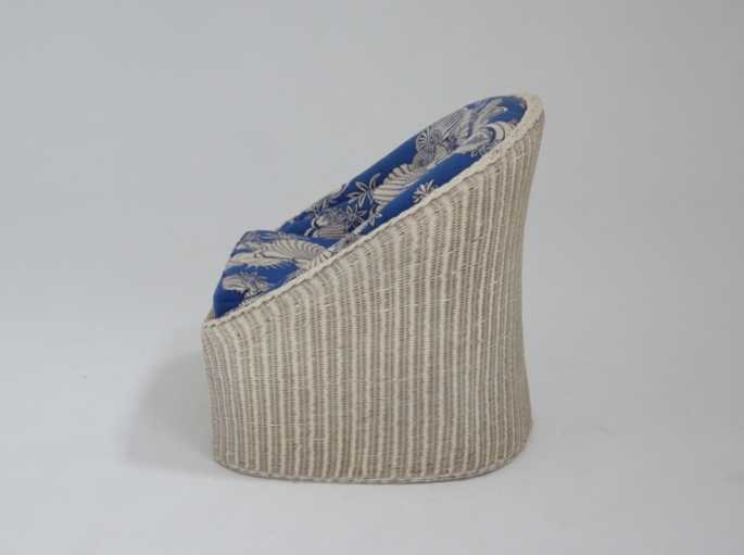 Silla de mimbre blanca con cojines florales azules
