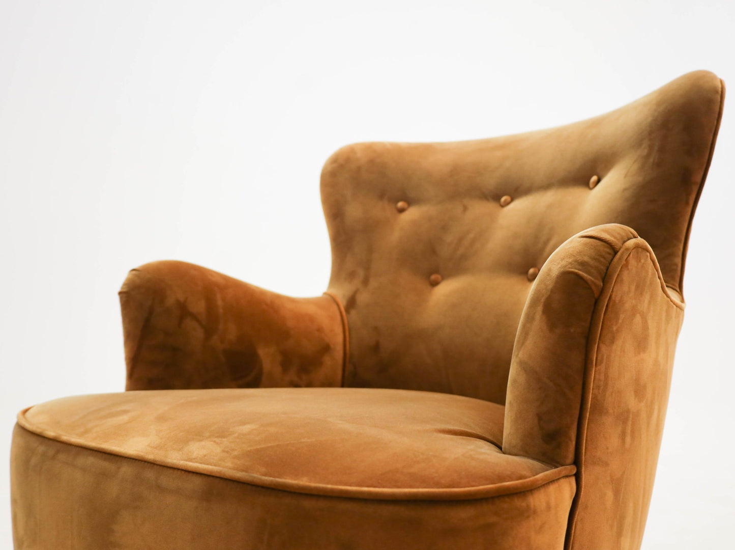 Sillón con respaldo alto de terciopelo color naranja quemado