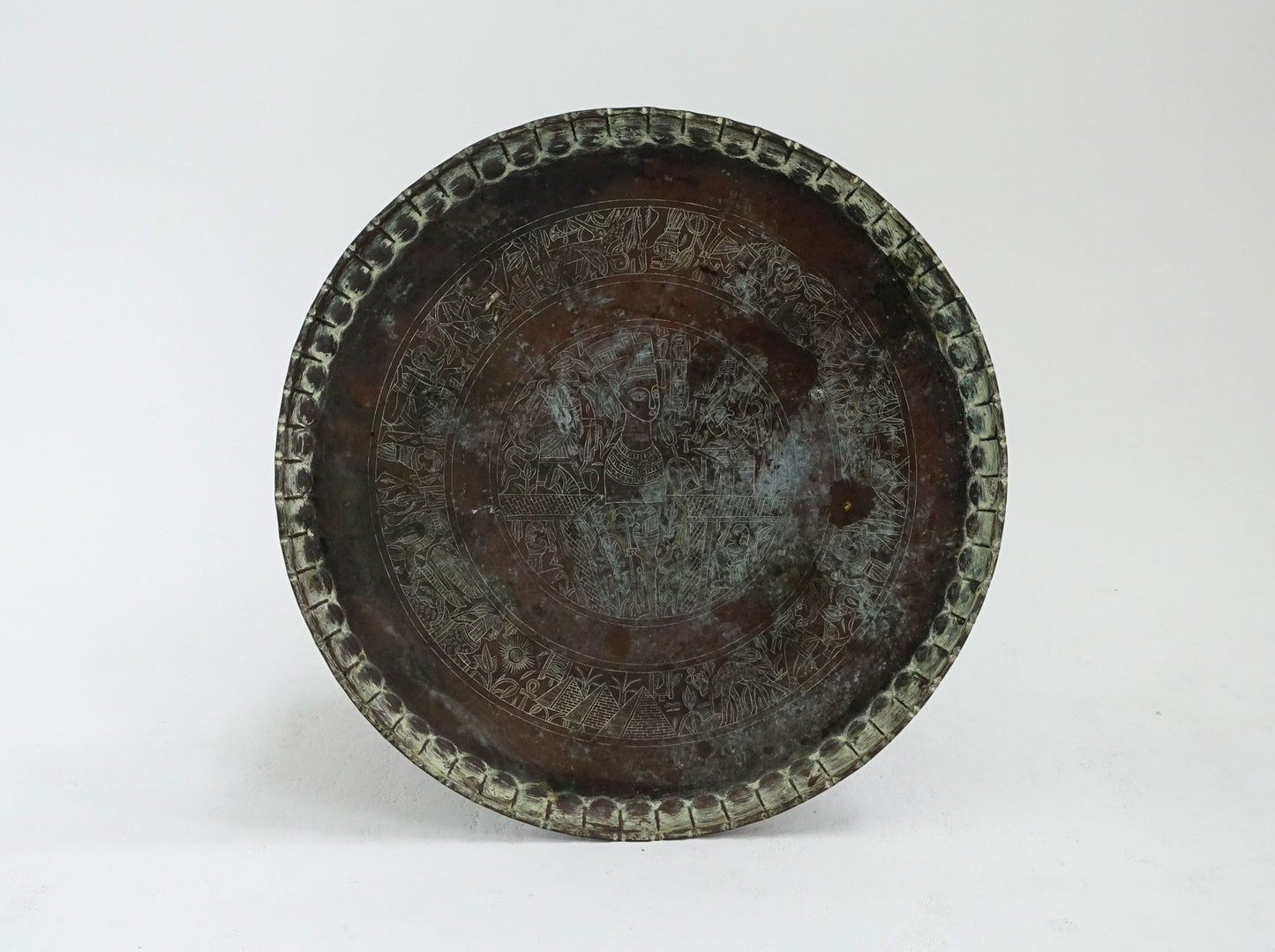 Bandeja de latón con grabado egipcio