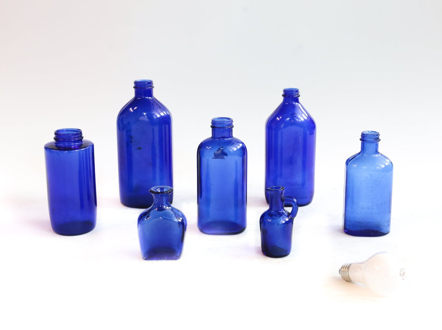 Botellas de farmacia azul cobalto