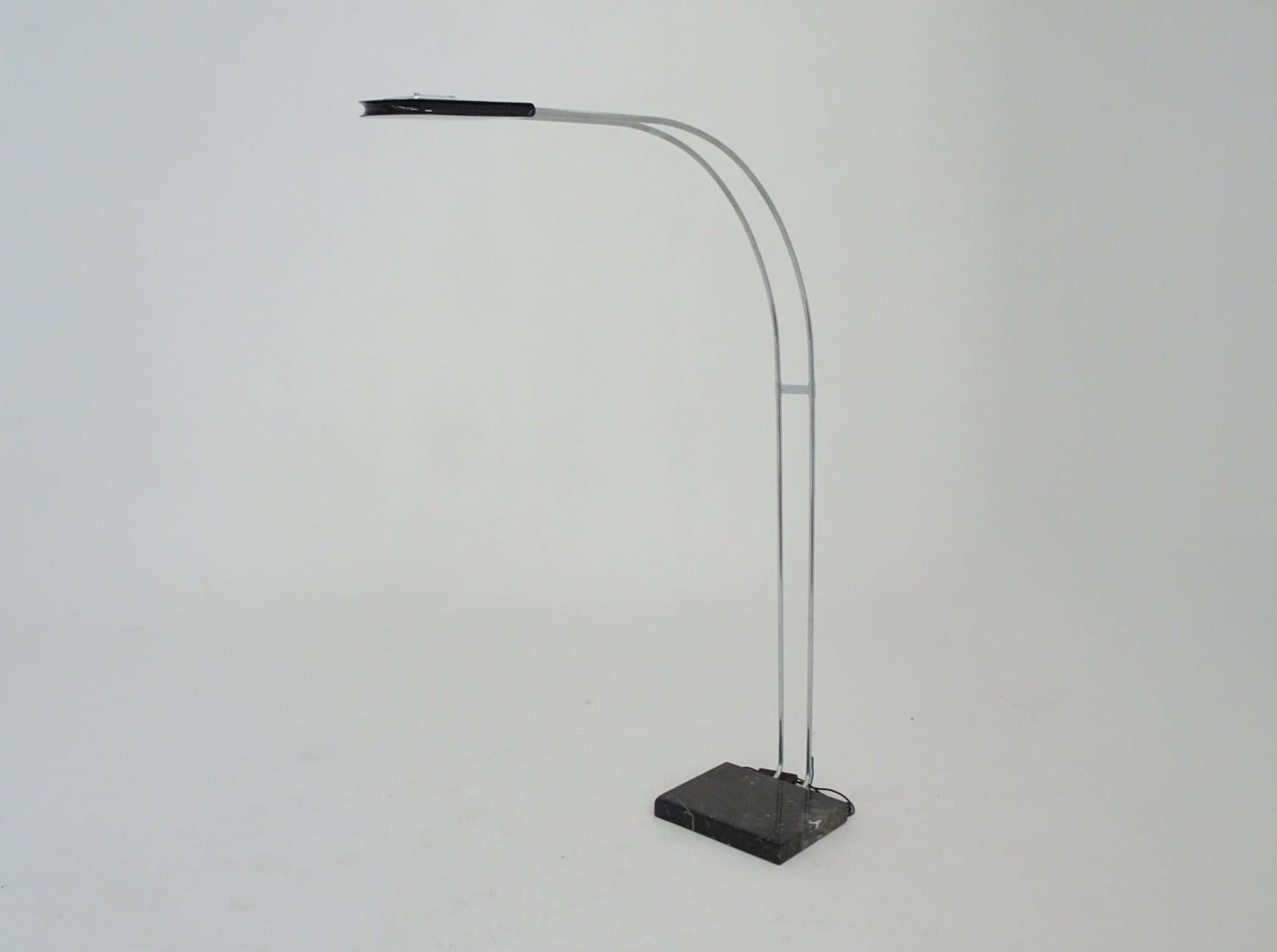 Lámpara de Pie Halógena Cromada Italiana con Base de Mármol Negro