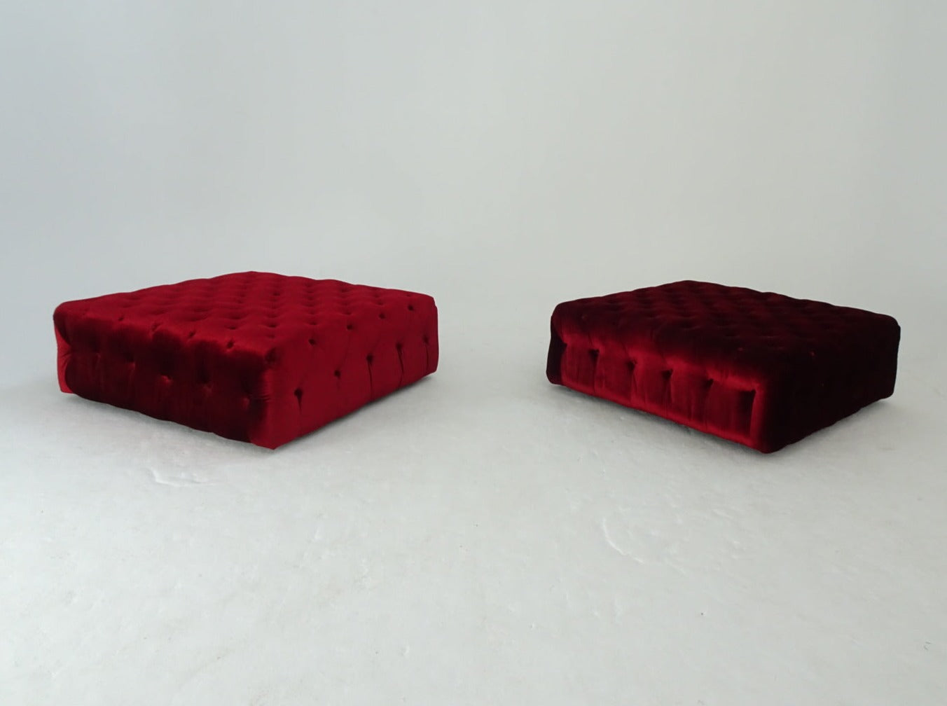 Otomana Grande Cuadrada con Capitoné y Tapizado de Terciopelo Rojo