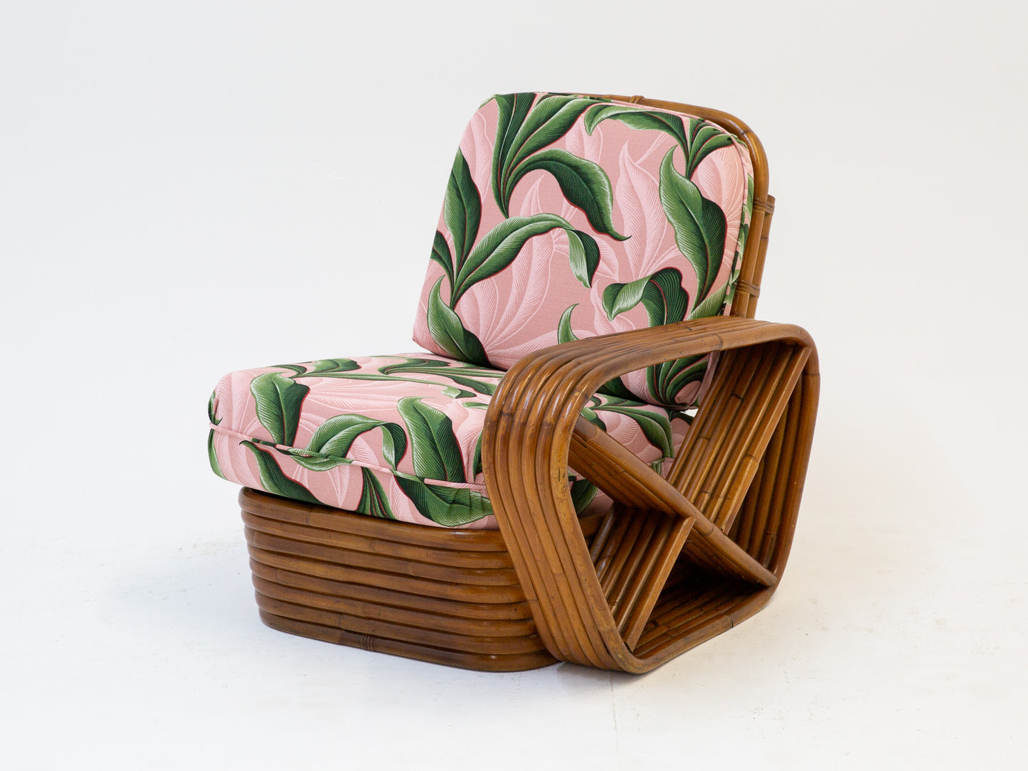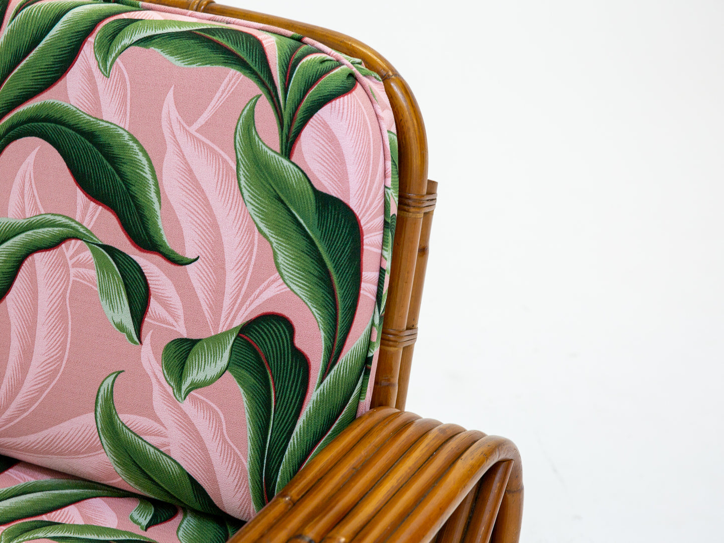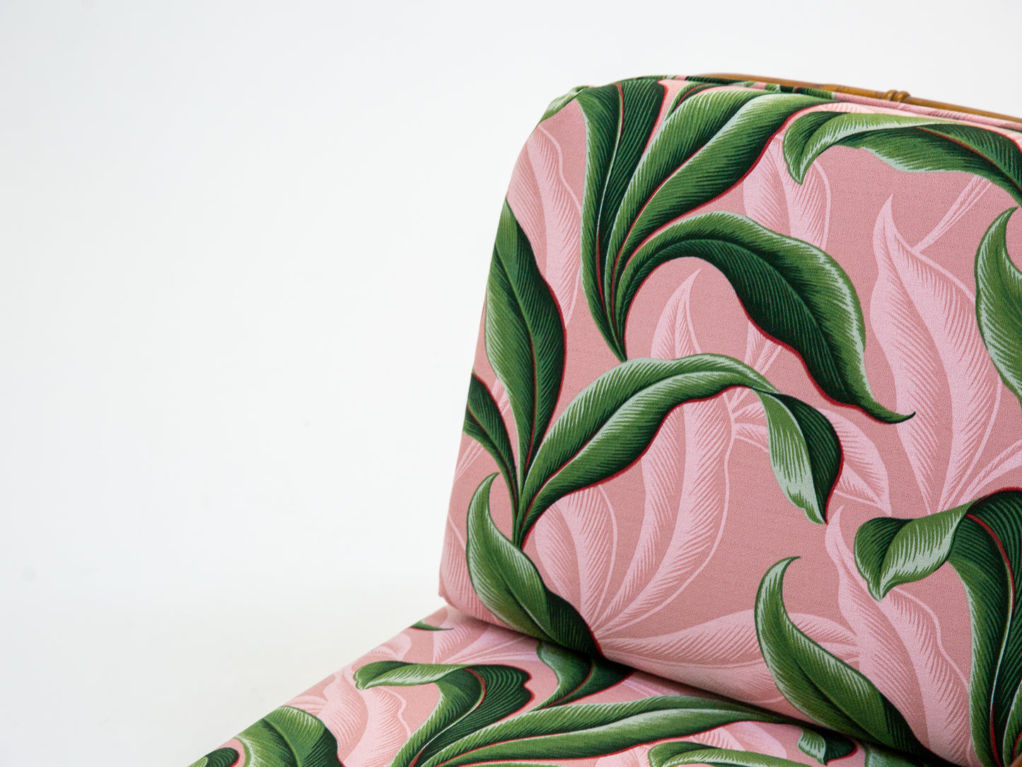Sofá Seccional de Bambú con Tela Tapizada Floral Rosa