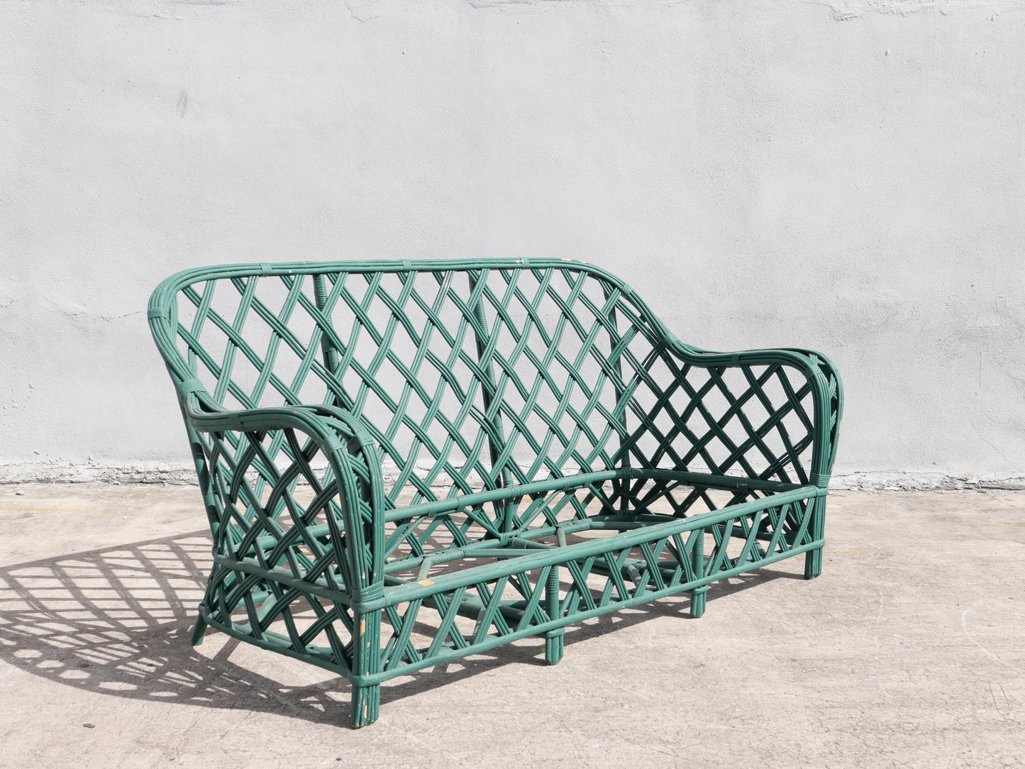 Sofá de Bambú Split Reed de los años 1920 - Los cojines personalizados se pueden fabricar en casa (Artículo pintable)