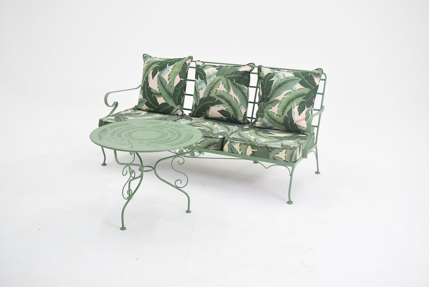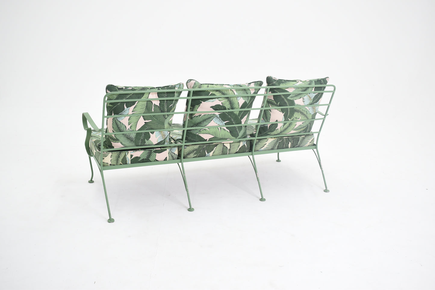 French Wrought Iron VIntage Sofa with Floral Fabric