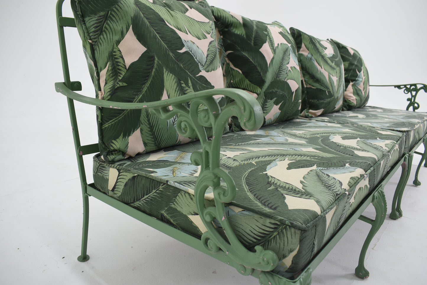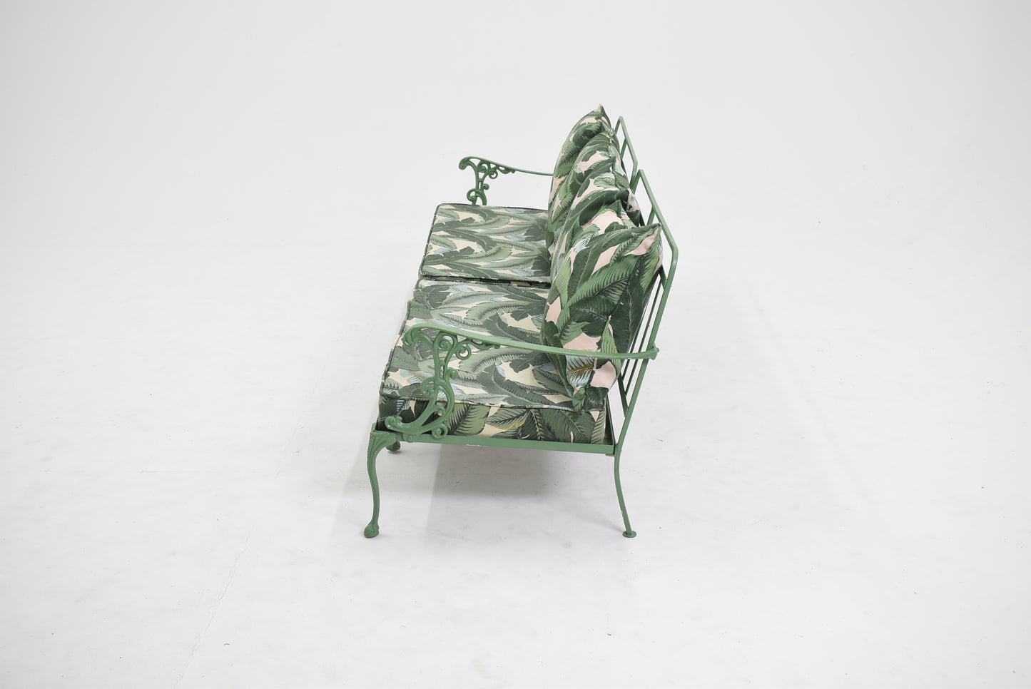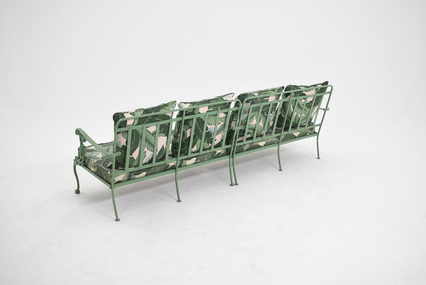 French Wrought Iron Vintage Four Seater Sofa with Floral Fabric