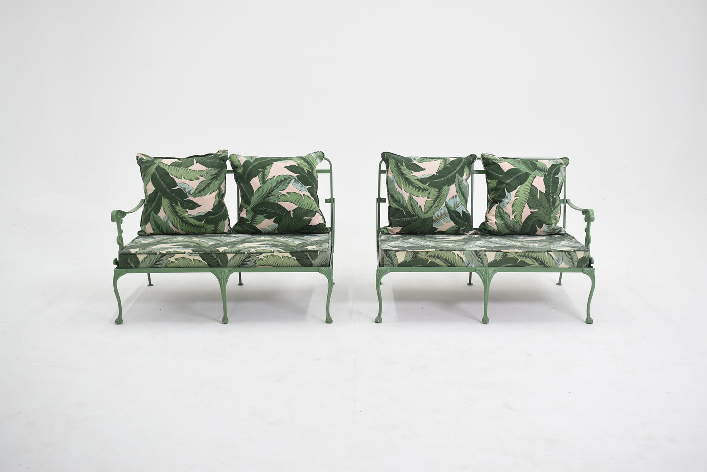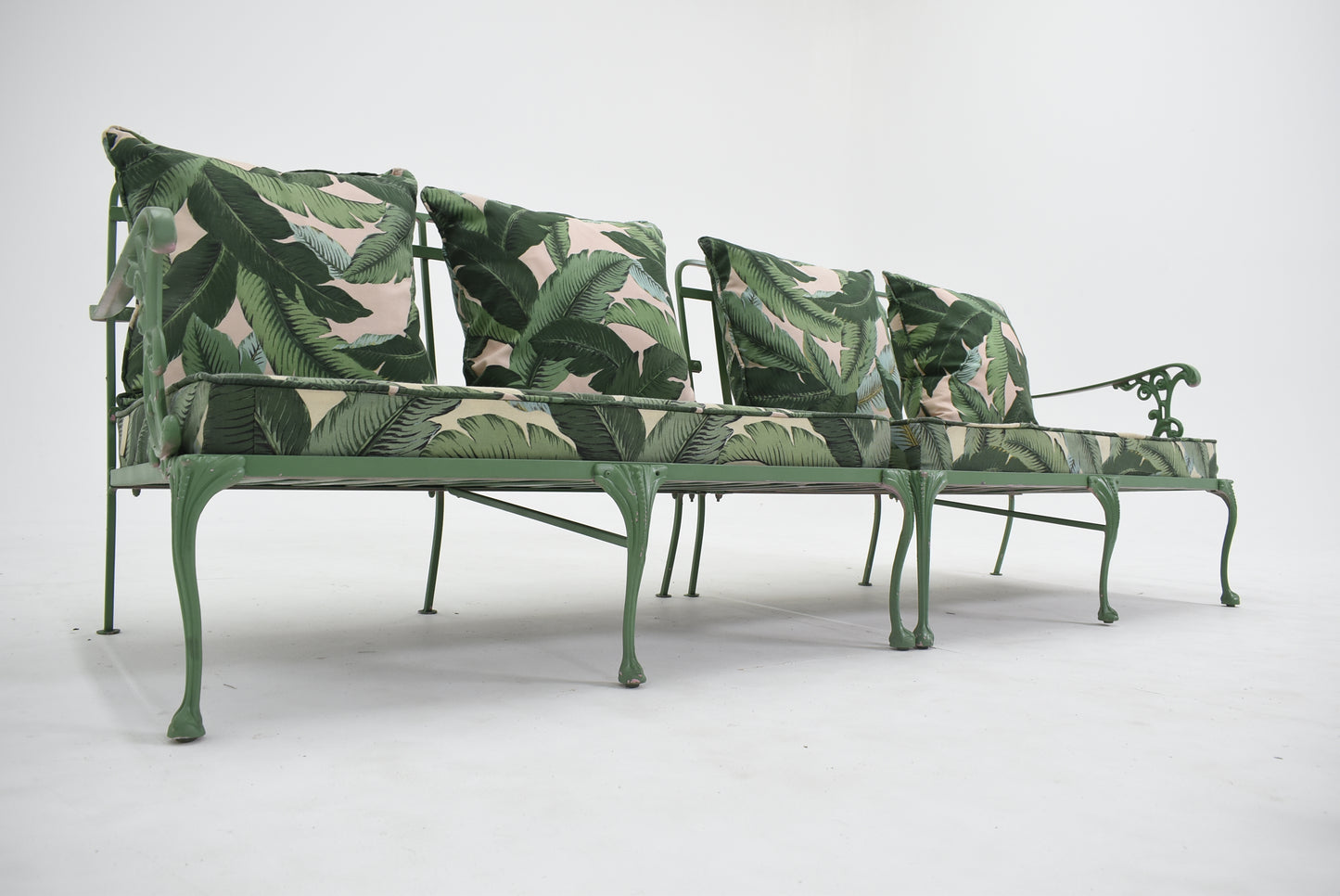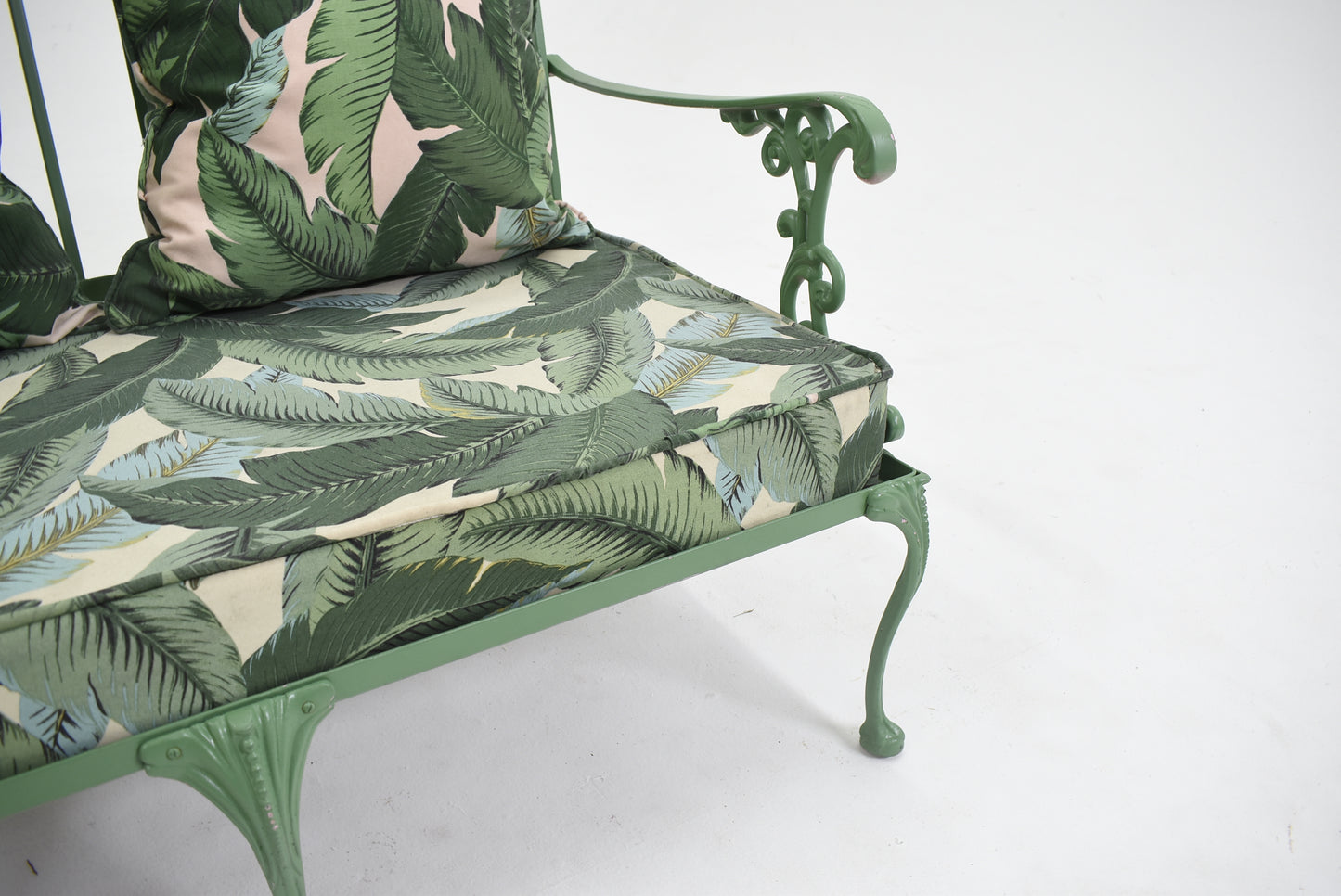 French Wrought Iron Vintage Four Seater Sofa with Floral Fabric