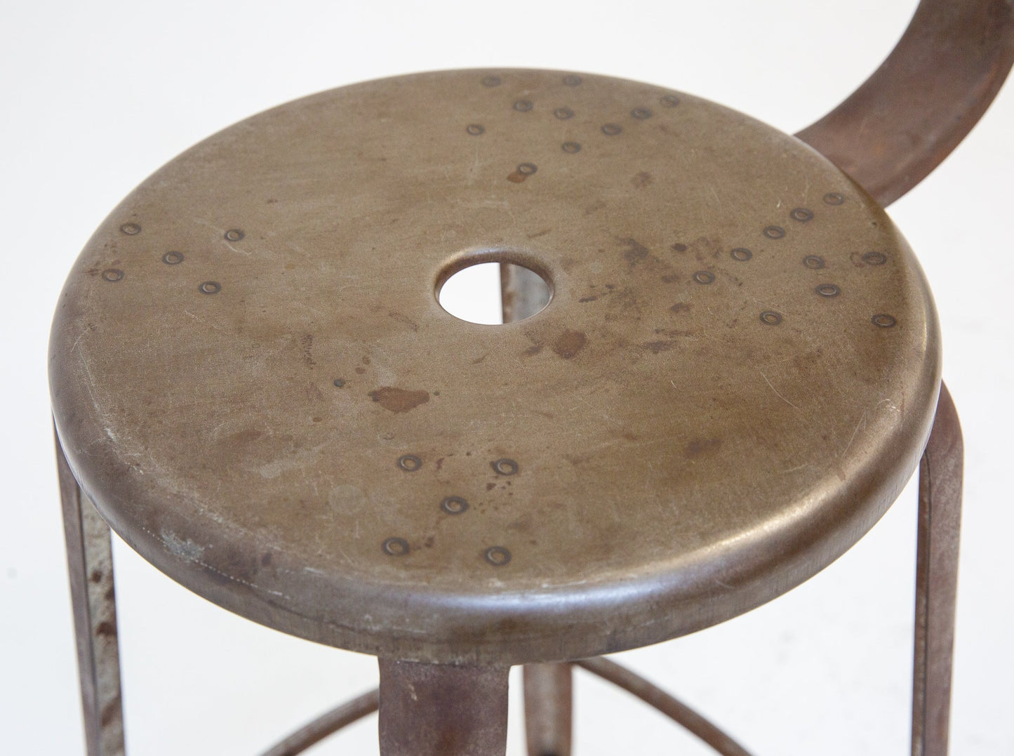 Taburete Industrial de Metal con Respaldo en Forma de Ballena