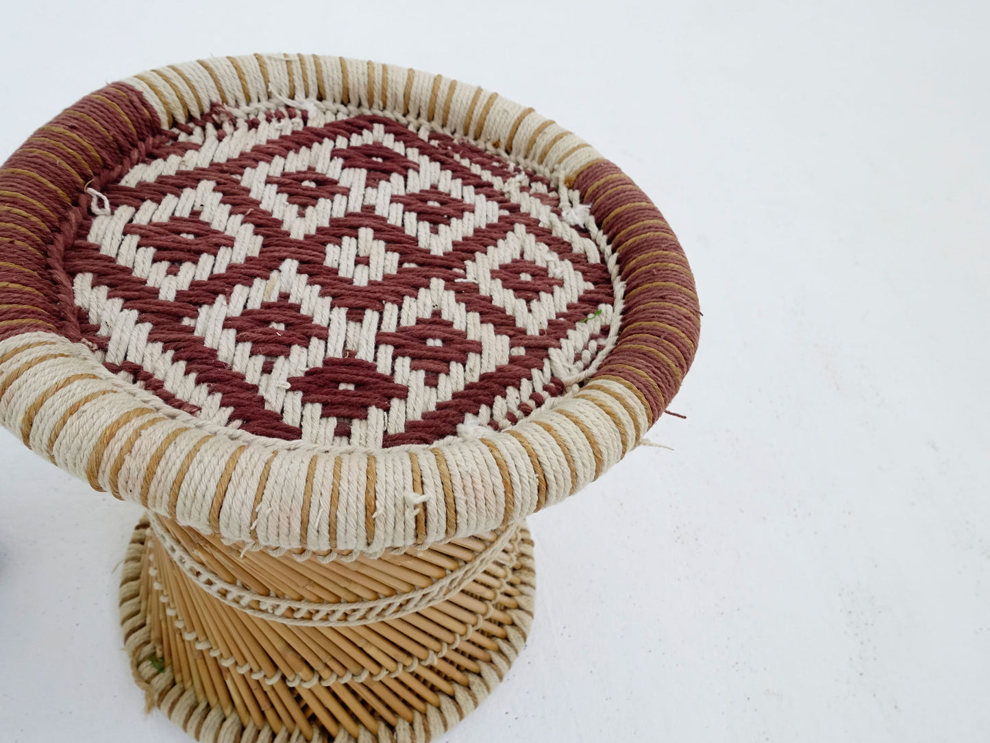 Mesa auxiliar de paja tejida con tablero con diseño de cuerda
