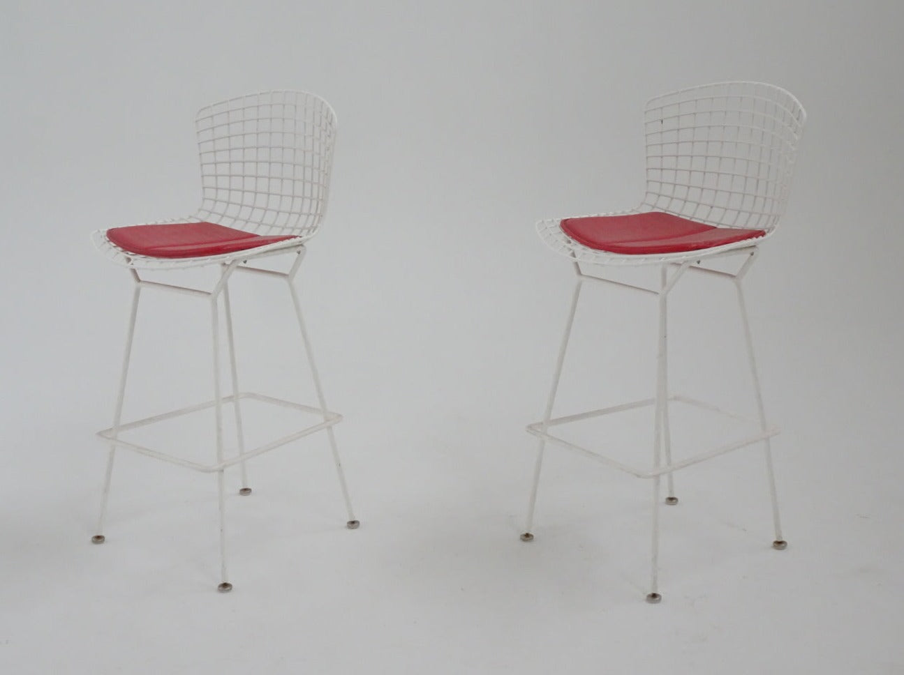 Taburete Knoll blanco con cojines rojos de Harry Bertoia
