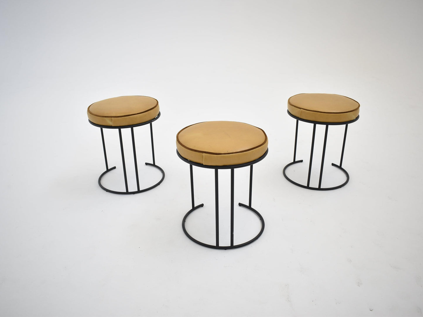 Taburete contemporáneo de acero con tapizado de cuero color caramelo