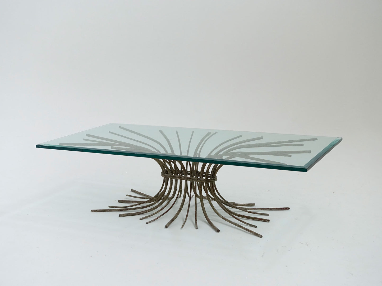 Mesa de centro de hierro fundido ornamental con tapa de cristal