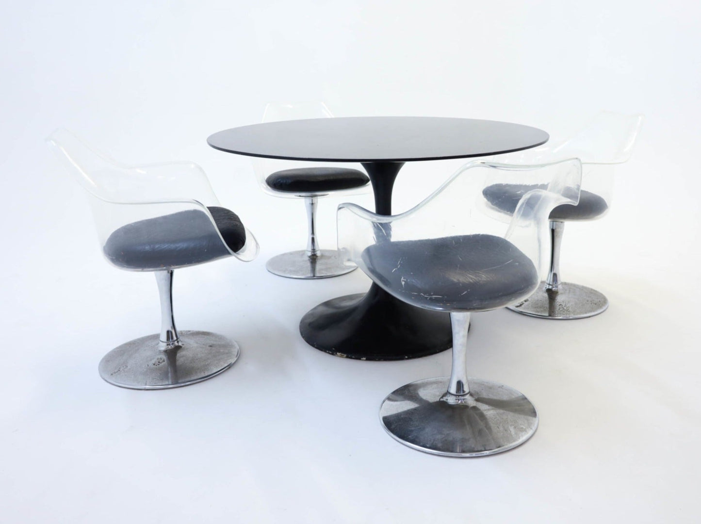 Mesa de mármol negro de estilo moderno de mediados de siglo