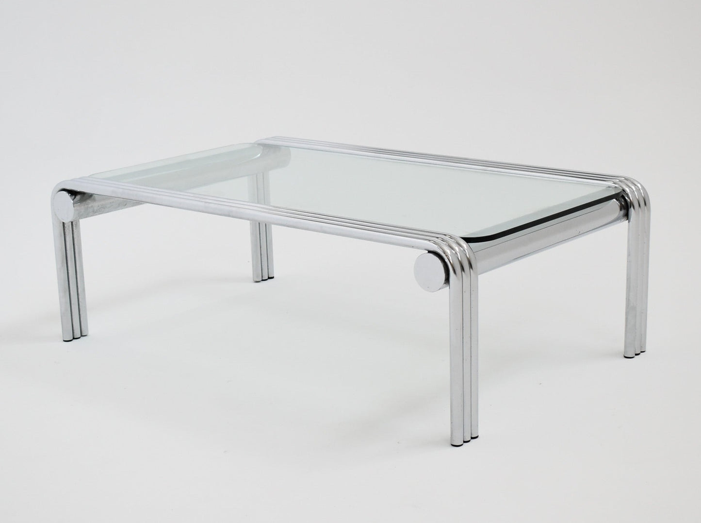 Mesa de centro moderna cromada con tablero de vidrio
