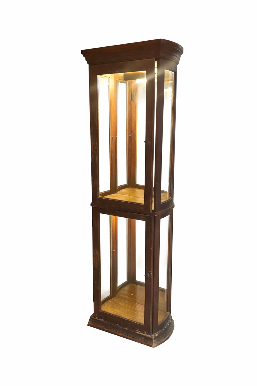 Antique Two Level Glass and Wood Display Cabinet with Overhead Lighting Feature