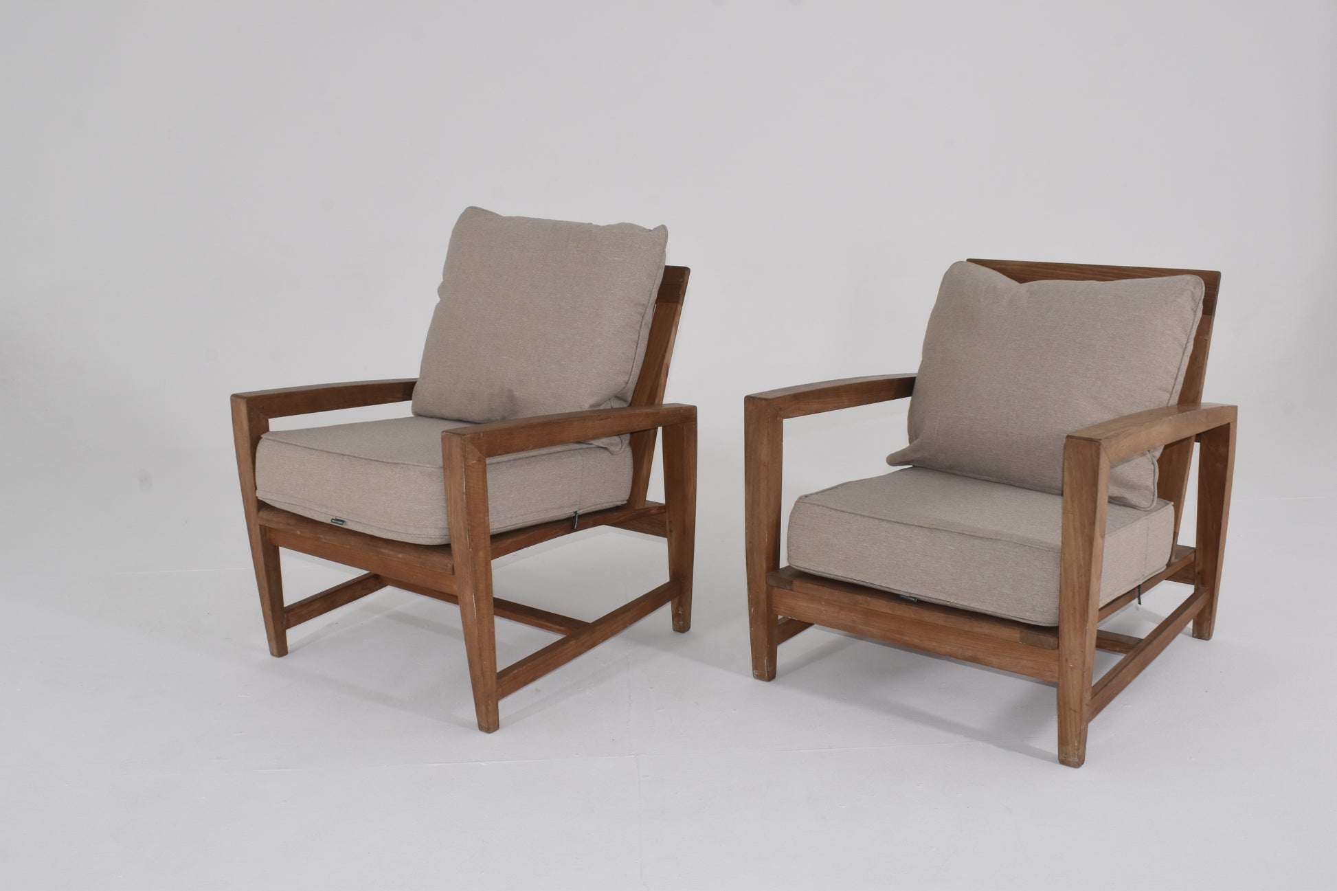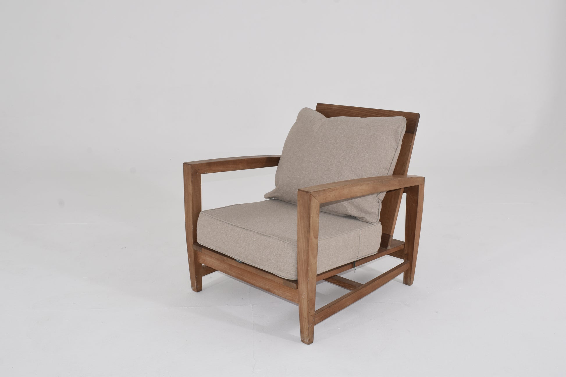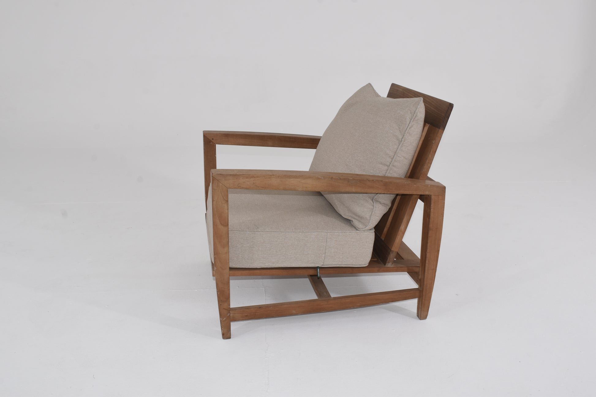 White Canvas Teak Lounge Chair with Ottoman