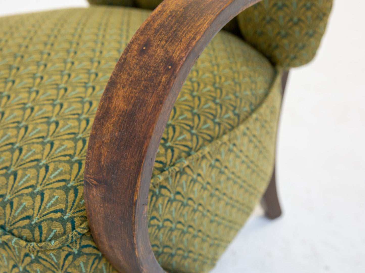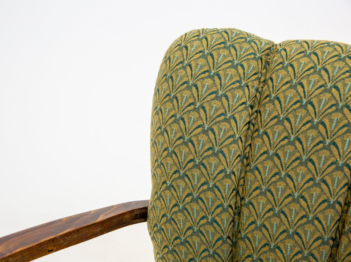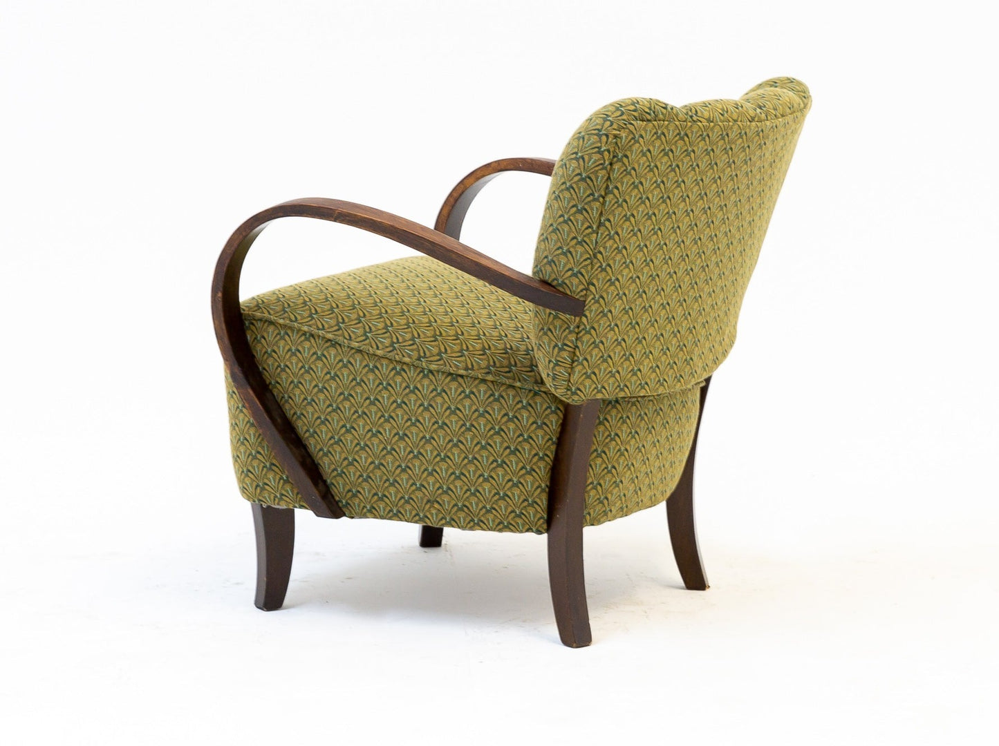 Green Art Deco Fan Fabric Scalloped Back 'H-237' Armchair by Jindřich Halabala