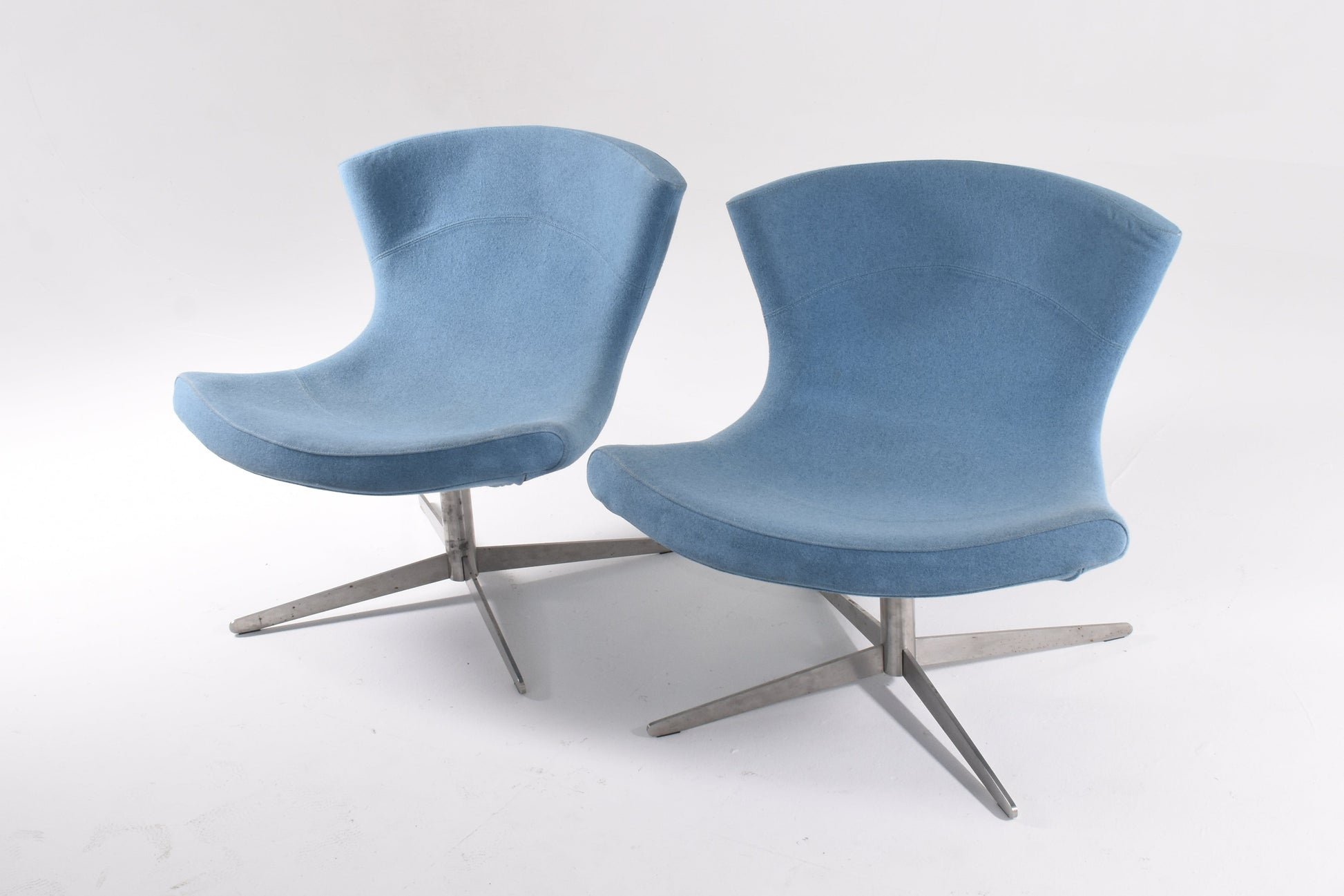 Light Blue Cashmere Upholstered Lounge Swivel Chair