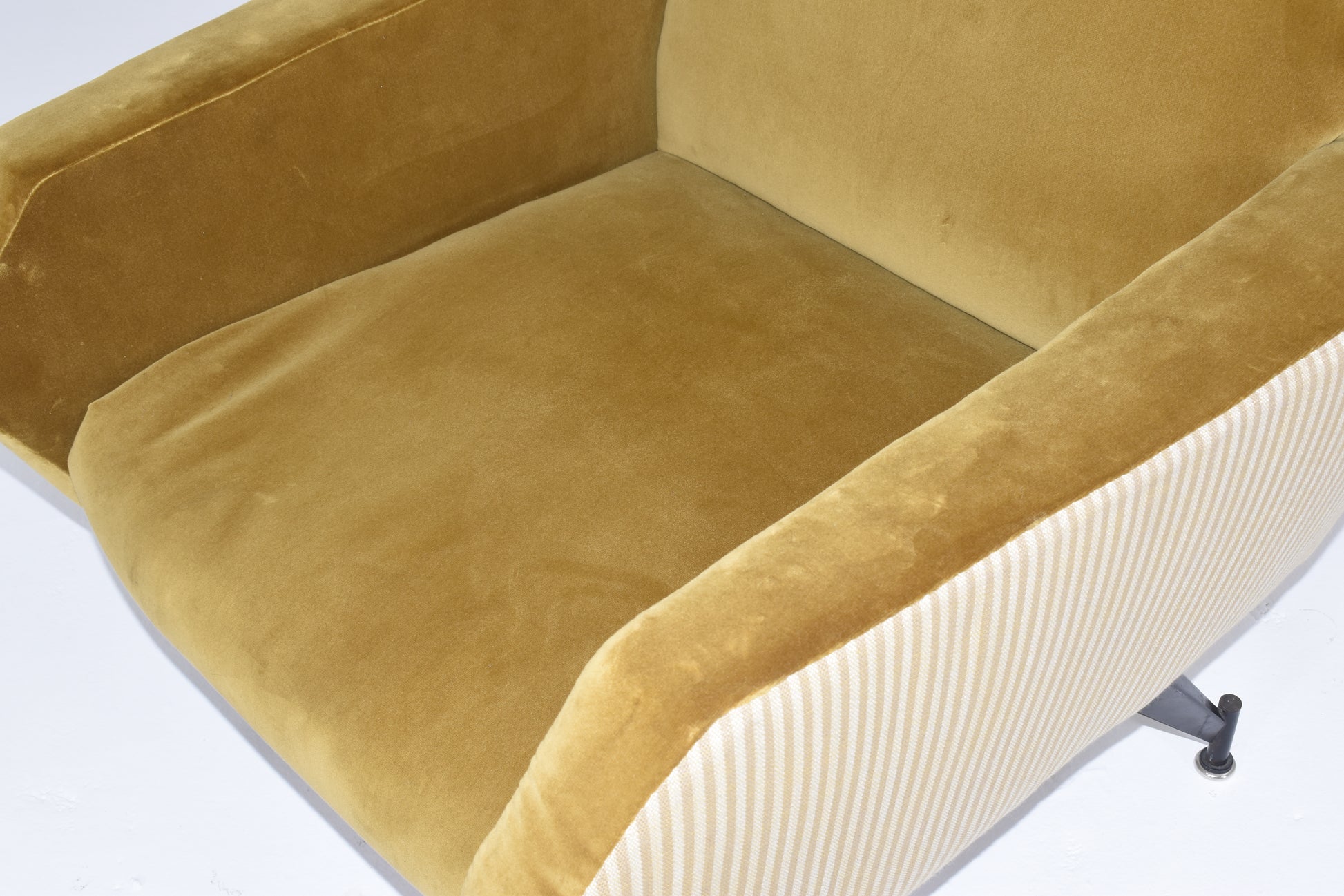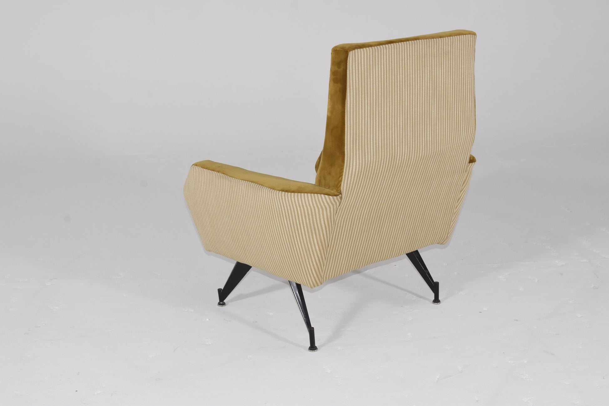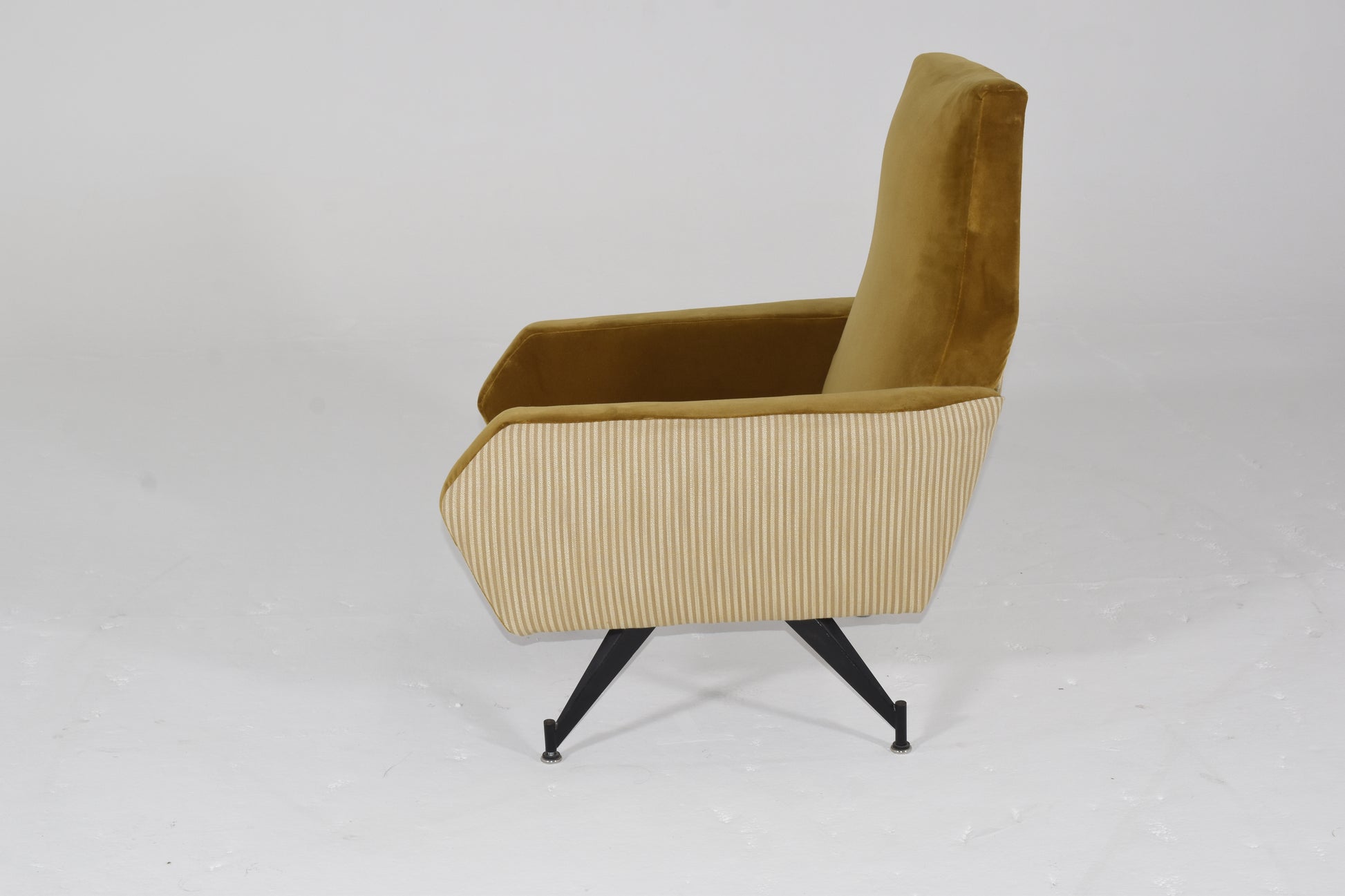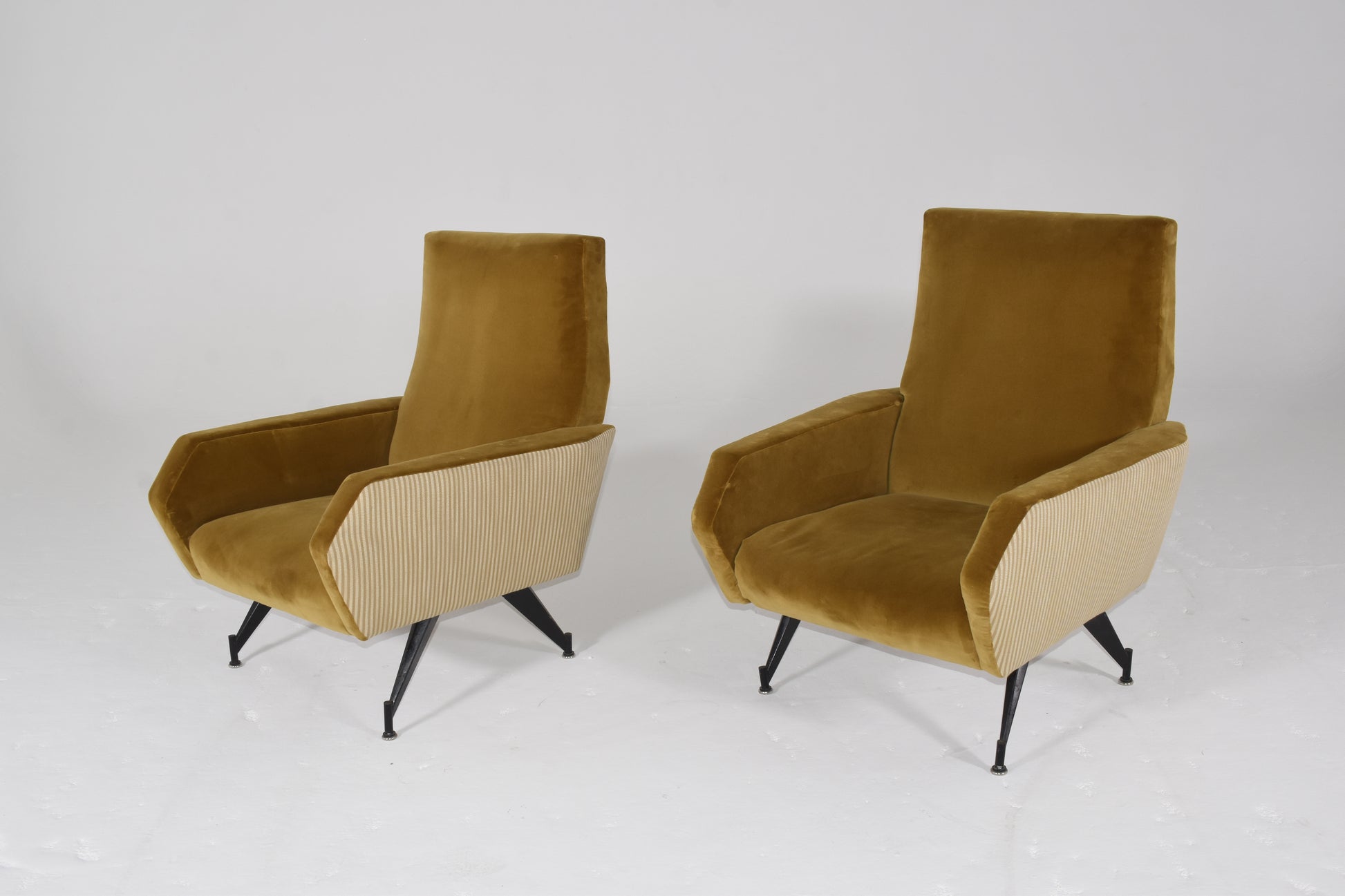 Italian Mid Century Modern Arm Chairs with Mustard Gold Mixed Upholstery