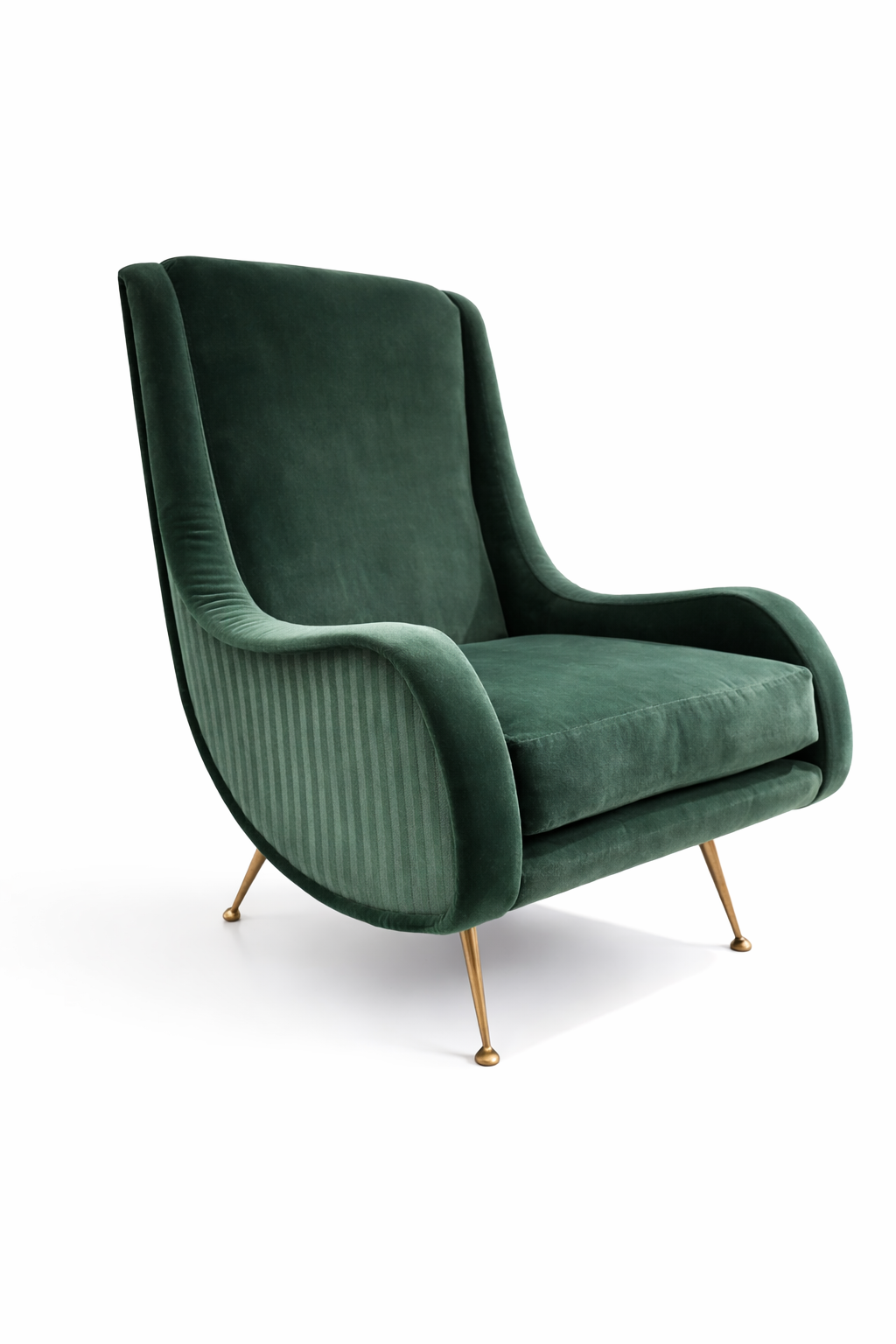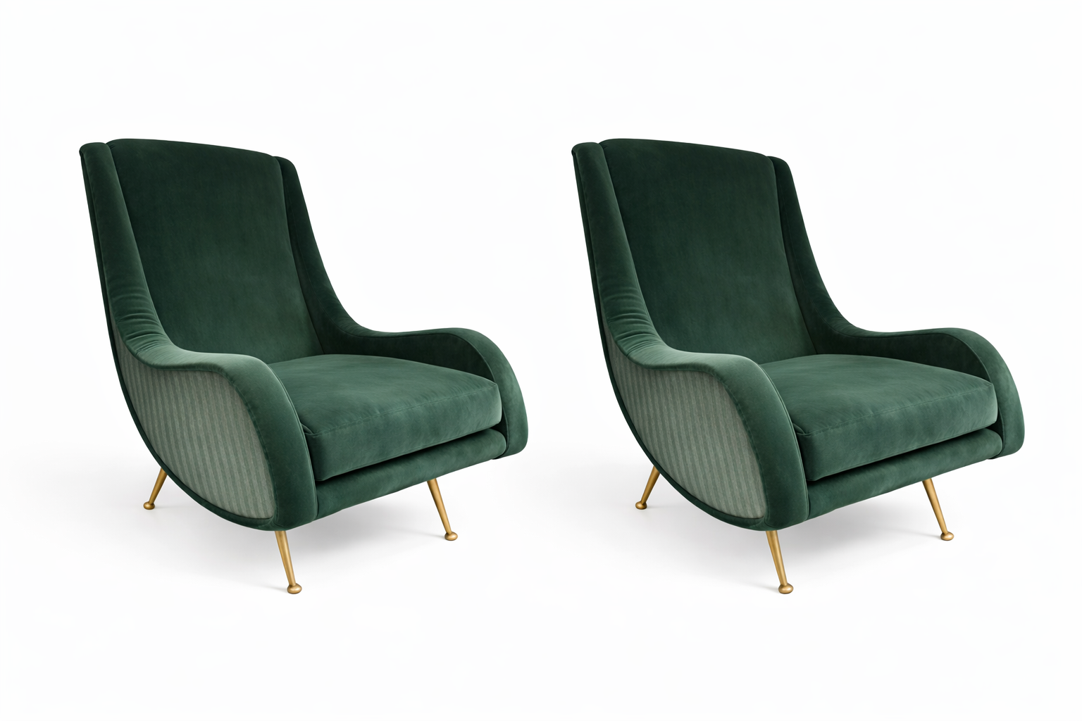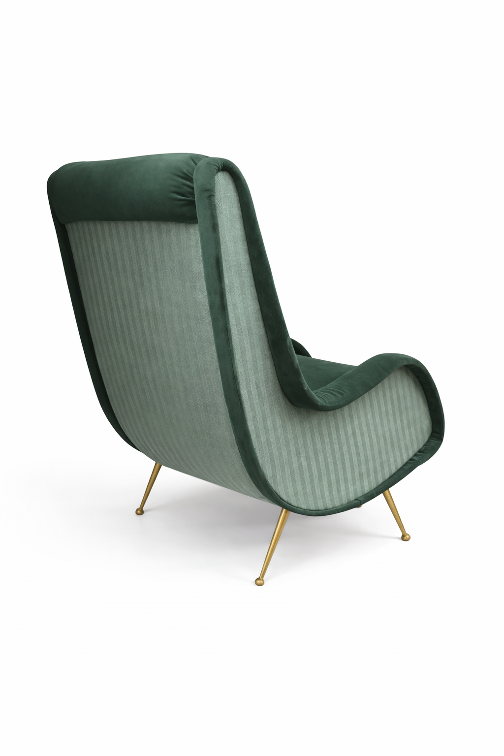 Italian Mid Century Modern Arm Chairs with Green Mixed Upholstery