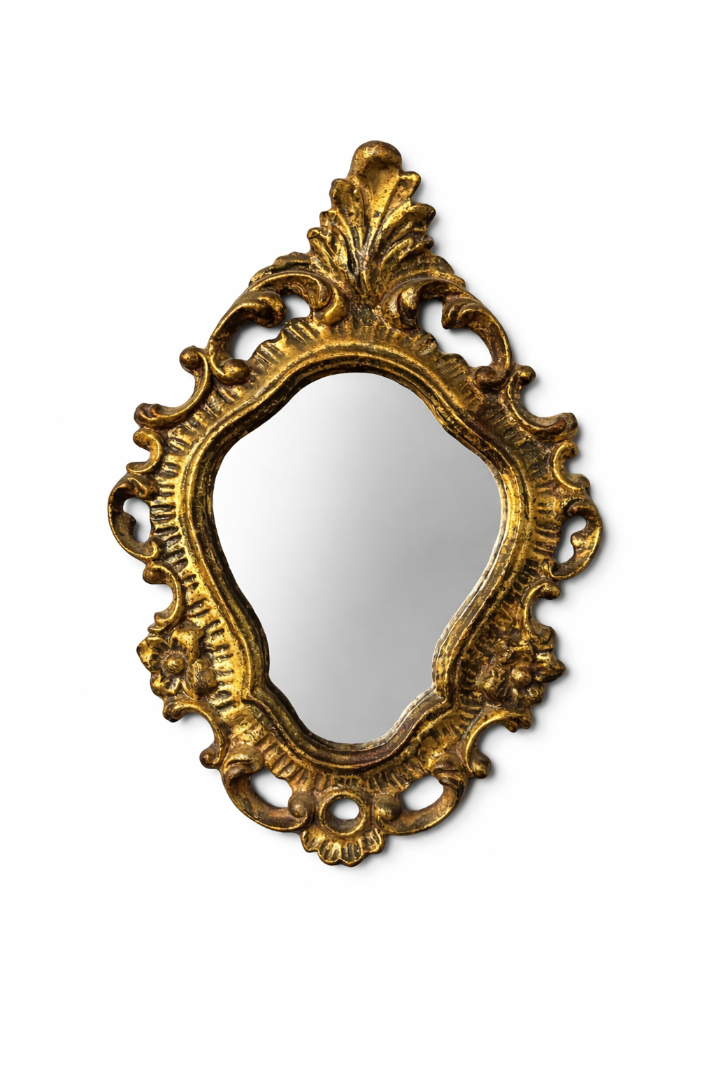 Small Antique Gold Gilded Ornate Metal Mirror