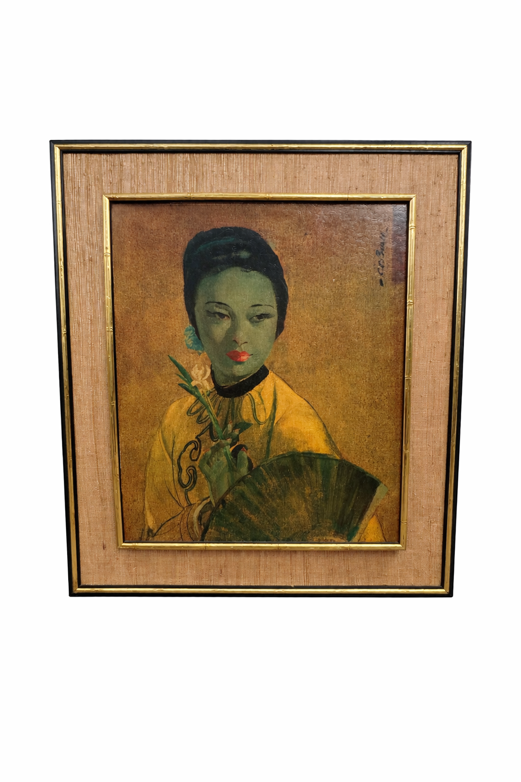 Hollywood Regency Chinoiserie Print with Faux Bamboo Frame
