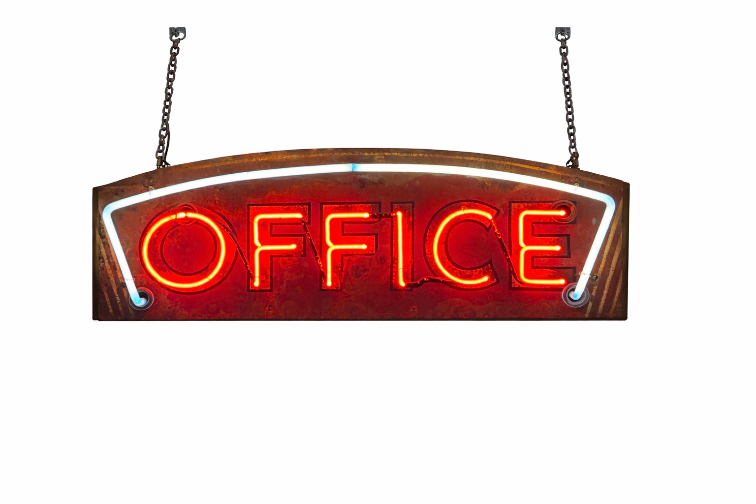 Original Vintage Metal Box Neon OFFICE Sign (sign neon is dimmable)