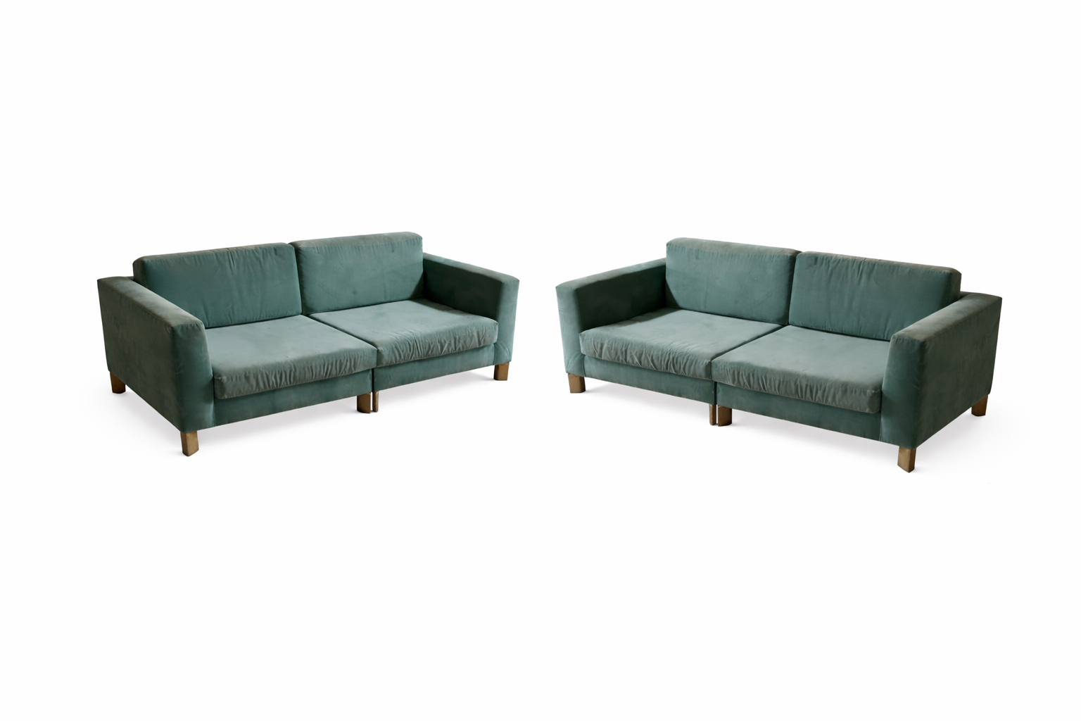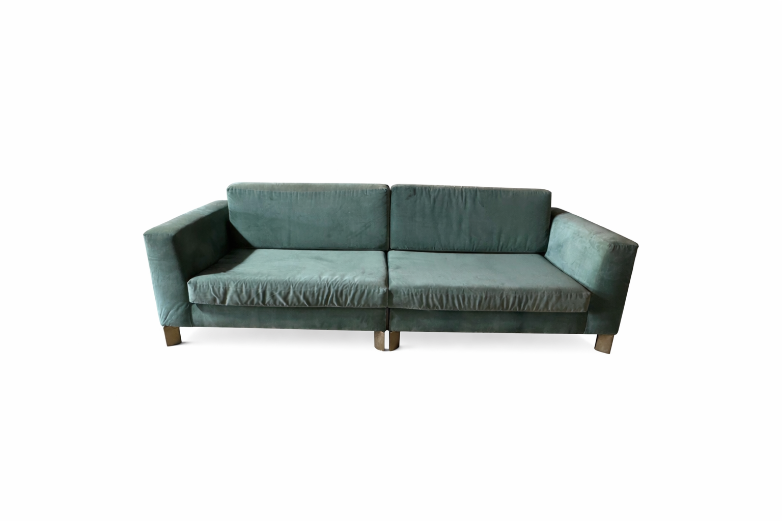 Aqua Modern Sofa with Brass Legs