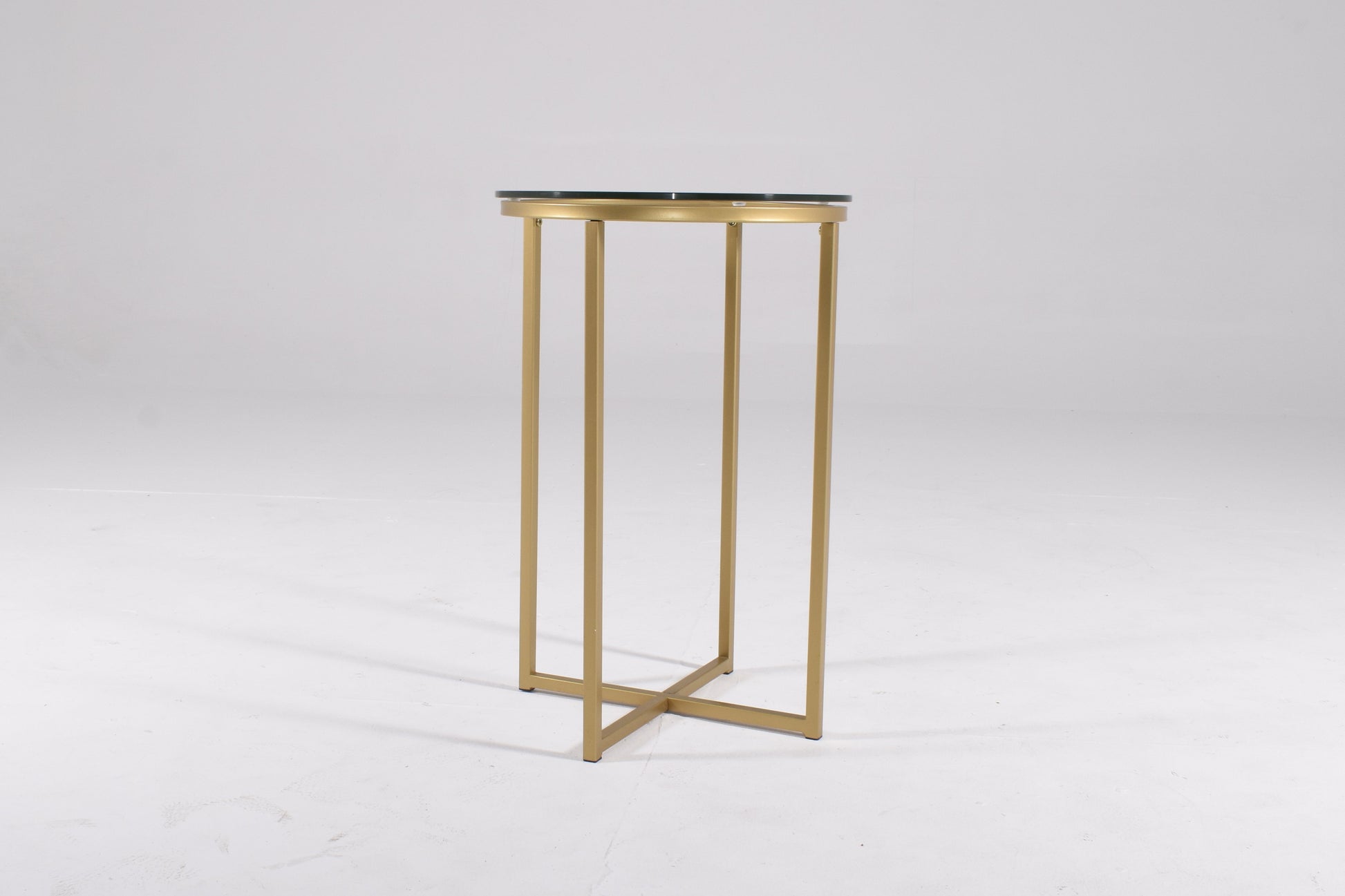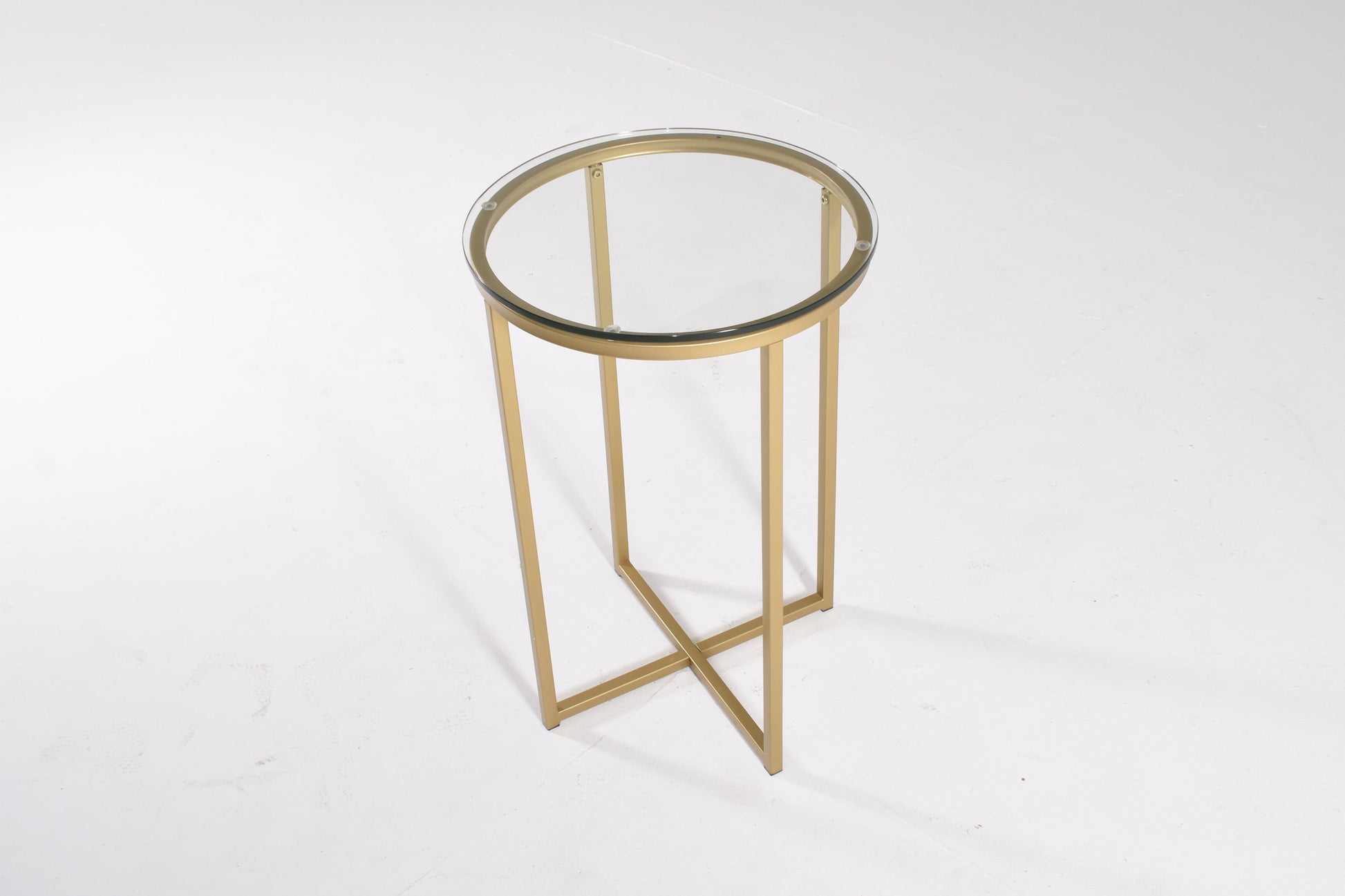Round Brass Side Table with Glass Top