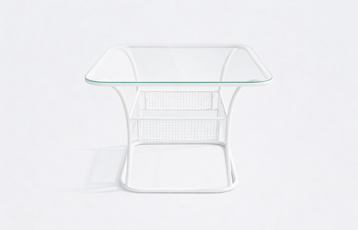 White Painted Square Russel Woodard Coffee table with Glass Top